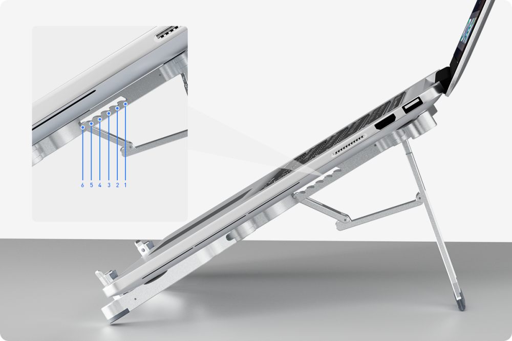 Enhance your workspace and protect your posture with the Standexi F5. Engineered from durable aluminum alloy, this portable laptop stand offers multiple height and angle adjustments for ergonomic comfort wherever you go. Its ultra-compact folding design fits easily in any bag and is compatible with most laptops and tablets from 10” to 17”. Non-slip silicone pads keep devices secure while the open frame improves cooling—ideal for office, study, and travel.